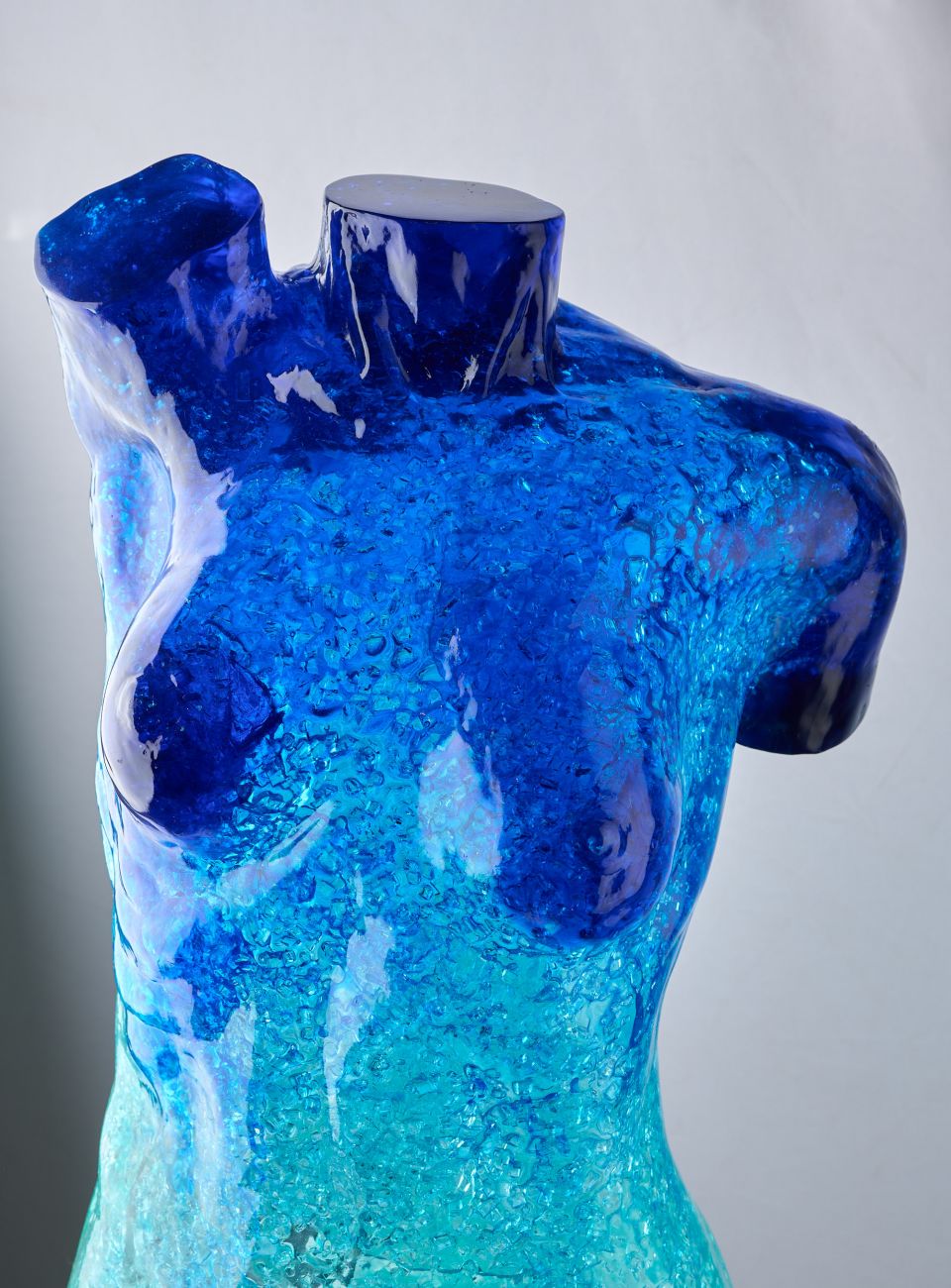 Crystal is a life study piece originally sculpted in clay. Celebrating the natural beauty of the human form, it’s curves in this classic pose are enhanced with the use of contemporary materials and the beautiful depth of colours found in the oceans.