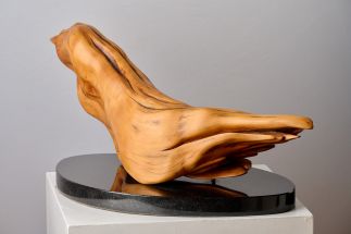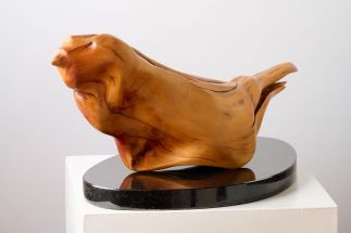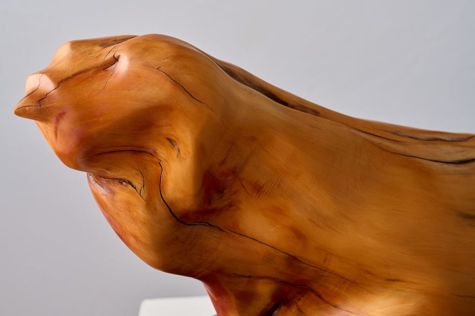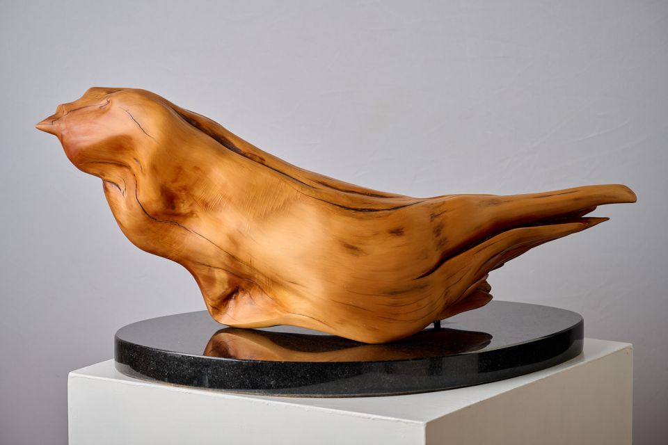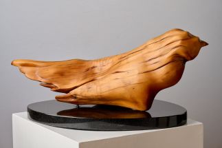 Mythology states that the phoenix goes back in many versions since the beginning of recorded history. My ancient Greek version is symbolic of the rebirth of the Phoenix from the burnt out ashes that are said to rise every 500 years, suggesting ongoing hope and immortatlity. I wanted some of the character of age through the worn smooth "feathers" of the later water water submerged Huon Pine, it's smooth tactile exterior to be embraced and revered because of the woods' exclusiveness.