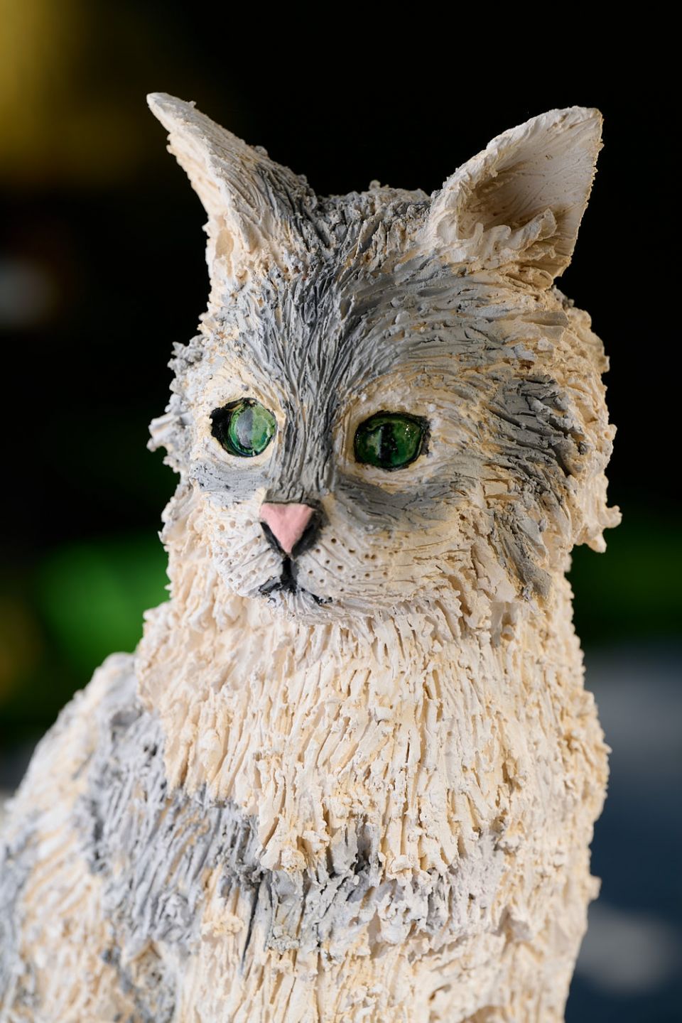 Tiffany is a breed of long haired cat and I wanted the challenge of making the fur. Cats all have their own personalities and I hope I have captured that.