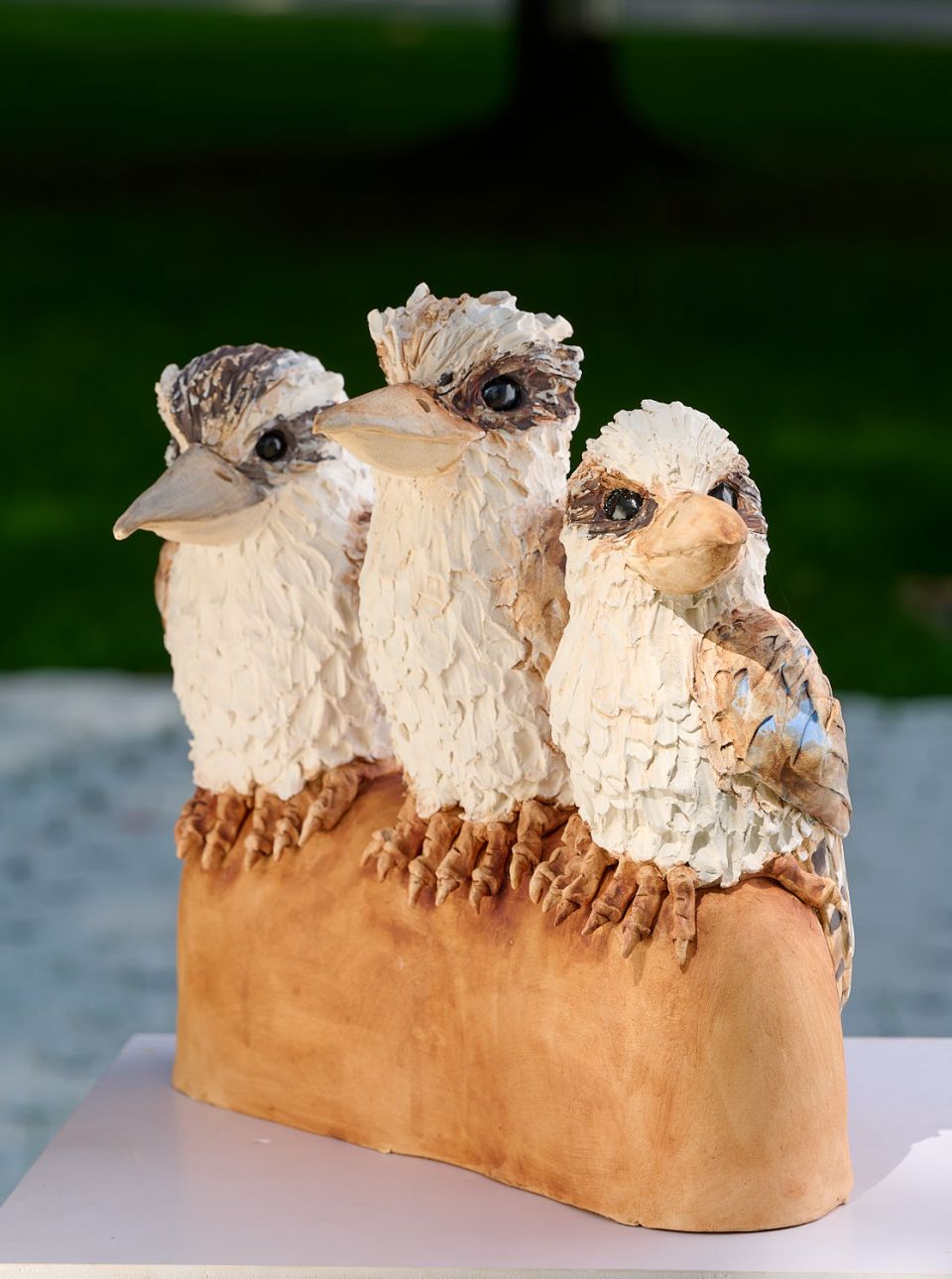 Kookaburra's are smart and very social, when my partner lived at Ferny Creek we used to hand feed them and they would line up on the hand rail like this waiting their turn. I love making animals and wanted to capture the colours and uniqueness of these ic